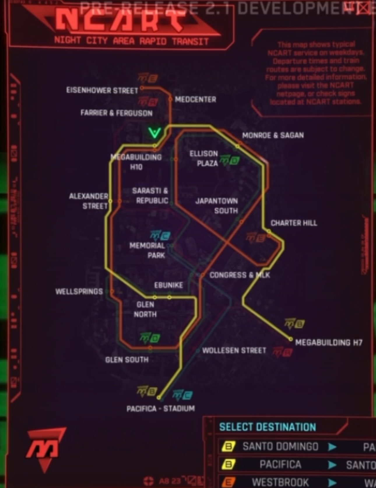 Night City Area Rapid Transit Metro Map (Based On In Game Stations