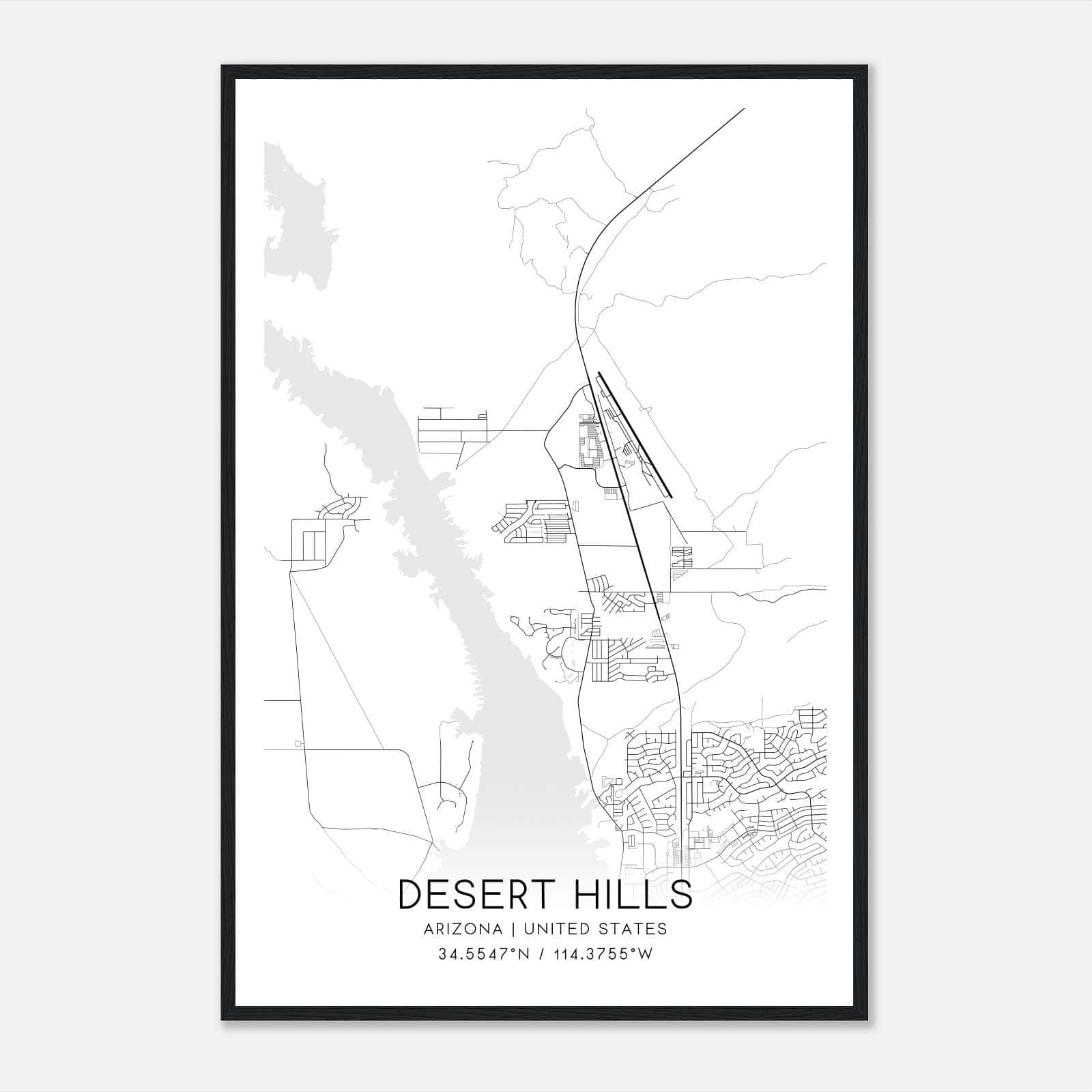 Desert Hills Arizona Map Poster, Modern Home Decor Wall Art Print