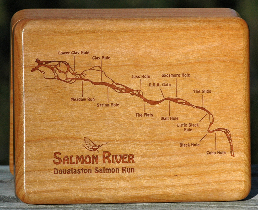 SALMON RIVER Douglaston Run River Map Fly Box Custom Designed