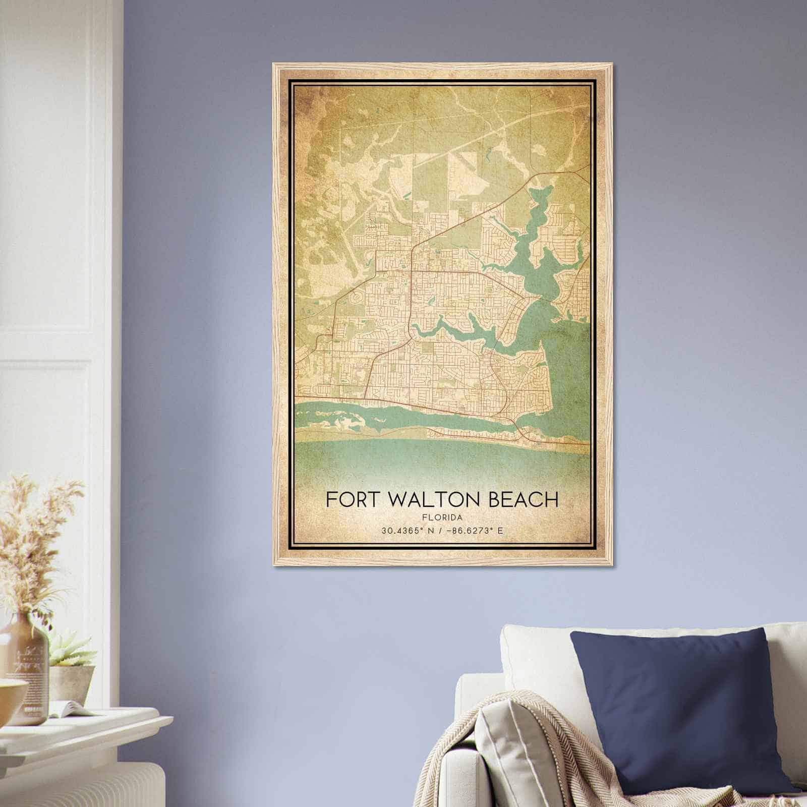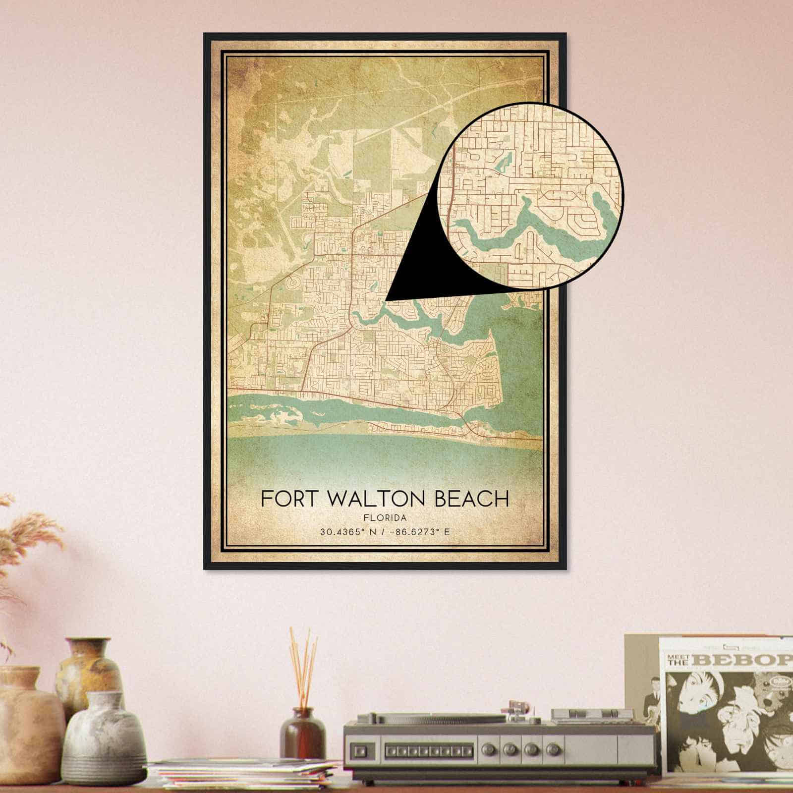 Vintage Fort Walton Beach Florida Map Poster, Modern Home Decor