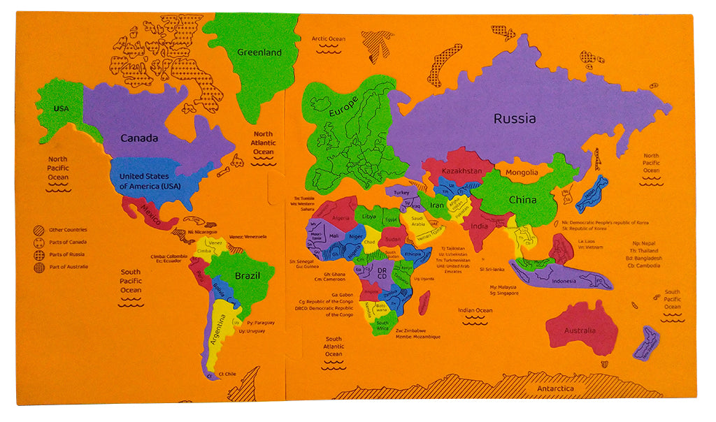 3 in 1 Educational World Map Puzzle with 40 Re usable Quiz Sheets