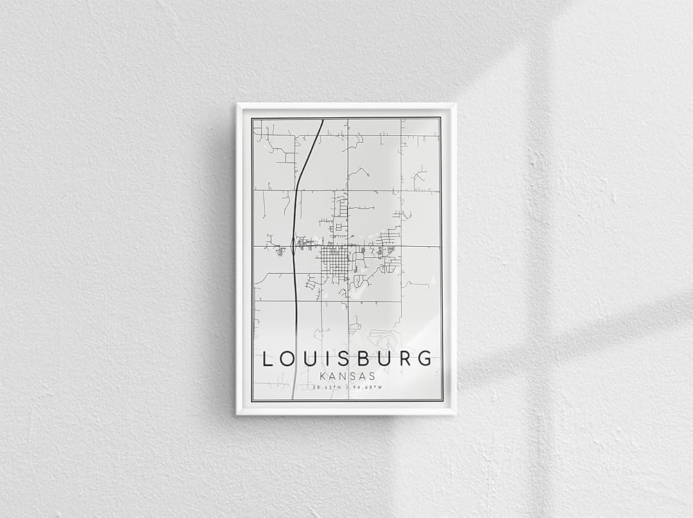 Vintage Louisburg Kansas Map Poster, Louisburg KS City Road Wall