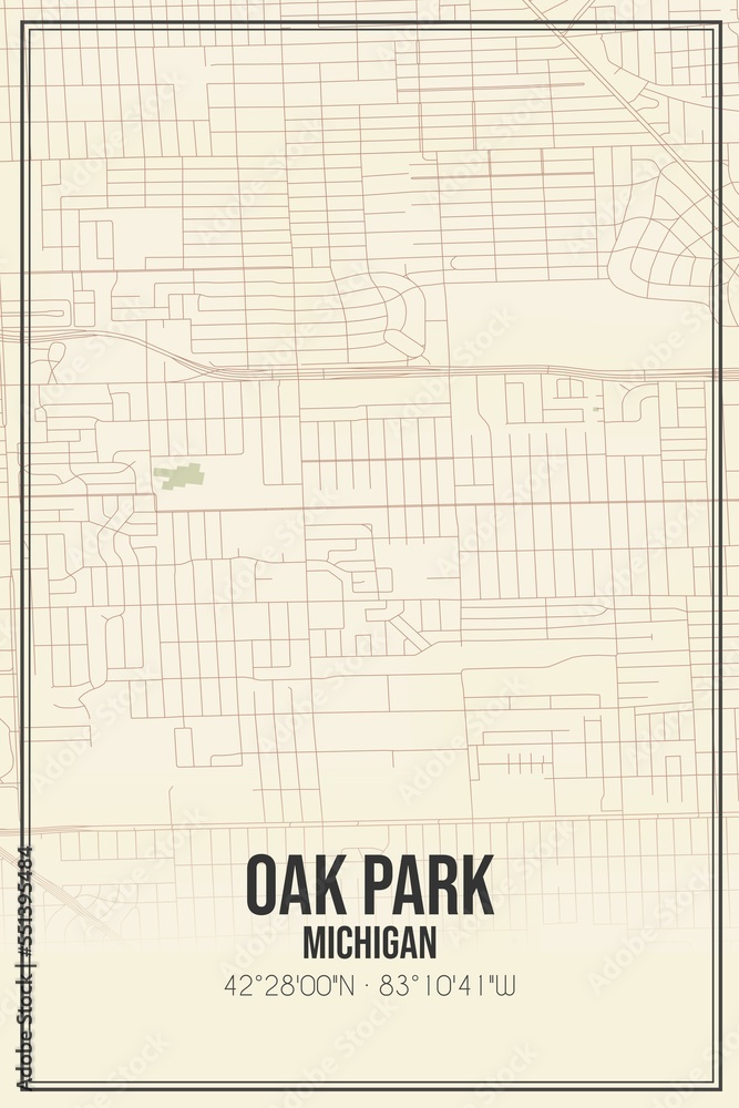 Retro US city map of Oak Park, Michigan. Vintage street map. Stock