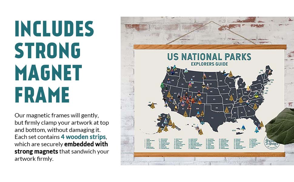 USA National Park Scratch off Map Magnetic Frame Scratch off