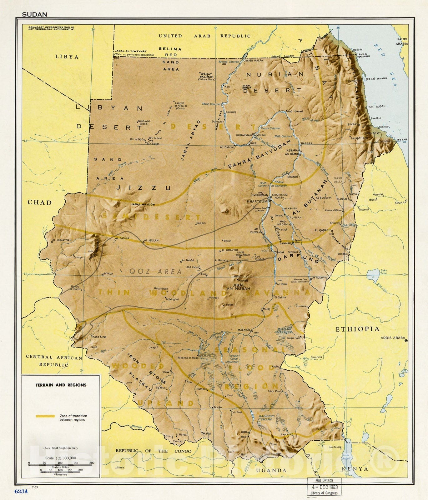 Historic 1963 Map Sudan : Terrain and Regions. – Historic Pictoric