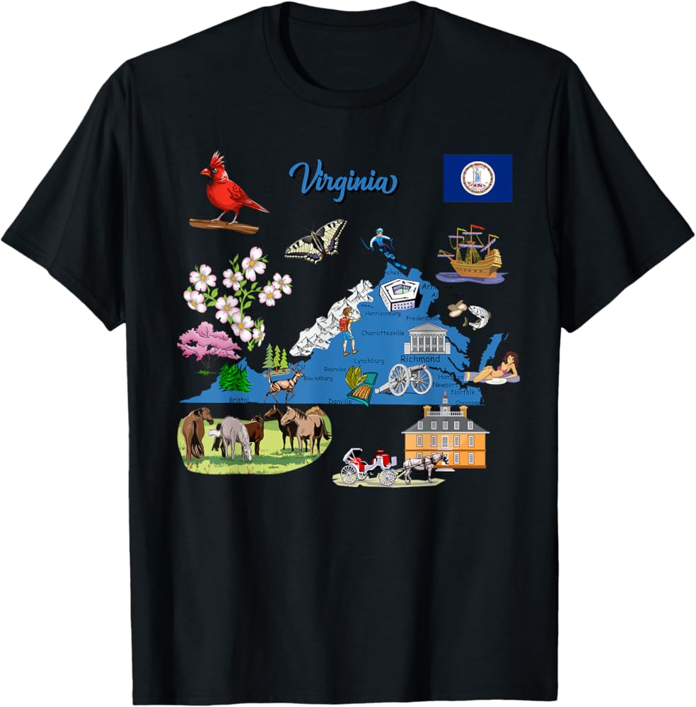 Amazon.com: tourism map of Virginia state, USA, major cities, flag