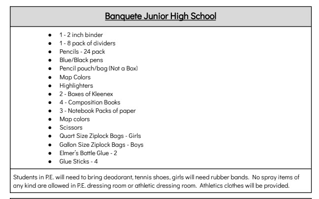 Rusk Junior High 2023 2024 School Supply List | Rusk Junior High